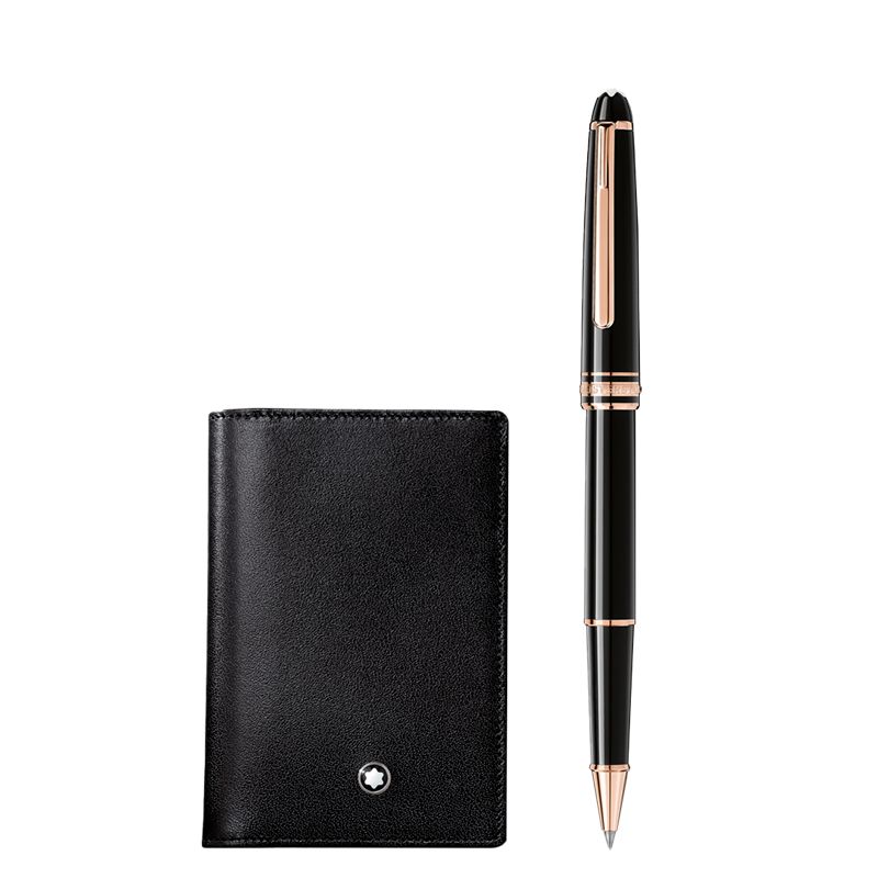 Set uključuje Montblanc Meisterstück Classique roler obložen rozim zlatom i Meisterstück etui za posjetnice.