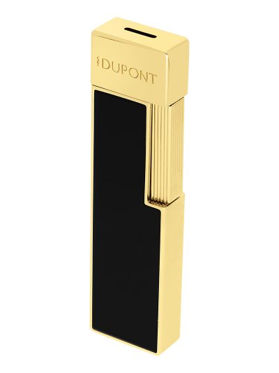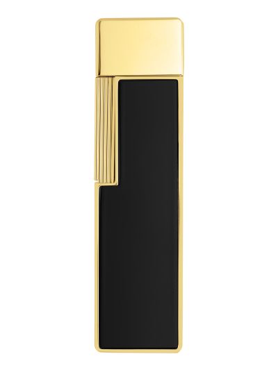 Upaljač Twiggy u crnom laku i zlatnoj završnici elegantan je i izduženog oblika.