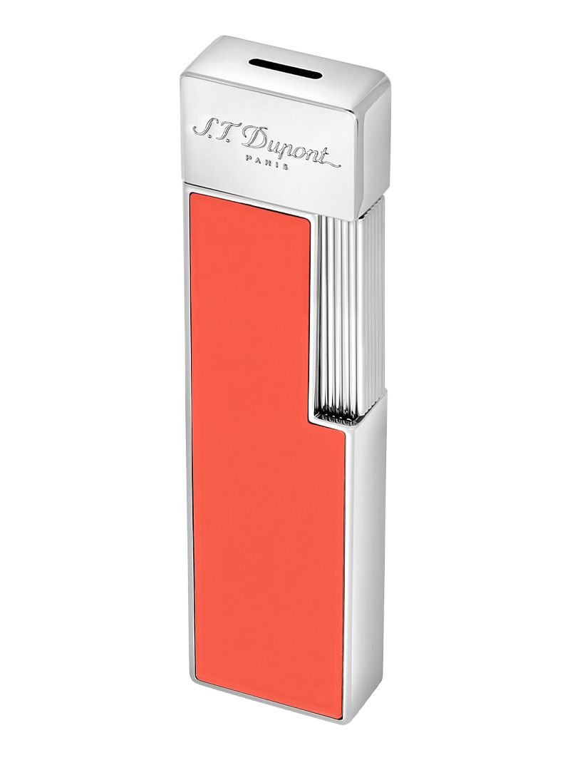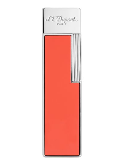 Upaljač Twiggy u koraljno crvenom laku i kromiranoj završnici elegantan je i izduženog oblika.