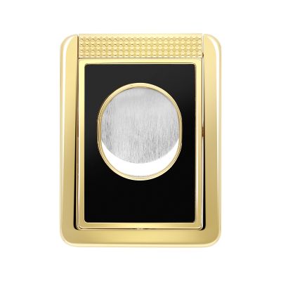 Rezač cigara sa zlatnim dijamantnim uzorkom i crnim lakiranim završetkom.
