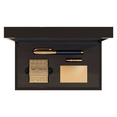Tijelo nalivpera je od plavog laka, a nalivpero dolazi s brončanim stalkom na kojem je prikazan Hotel Particulier.