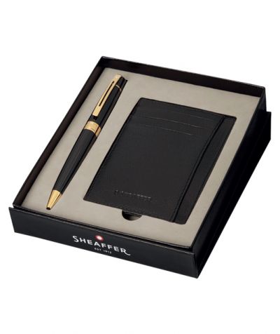 Sheaffer 300 Glossy Black / Gold Tone kemijska olovka i Sheaffer kožni etui za vizitke